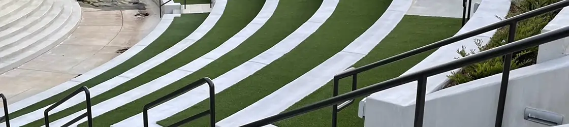Absolutely. Our commercial turf products are built for durability and safety in high-use environments, such as office courtyards, hotels, retail centers, schools, rooftop amenities, and event venues. These products resist wear, maintain color, and include advanced drainage systems to keep surfaces dry and usable. Many options also meet ADA, IPEMA, or ASTM safety standards, depending on the application.